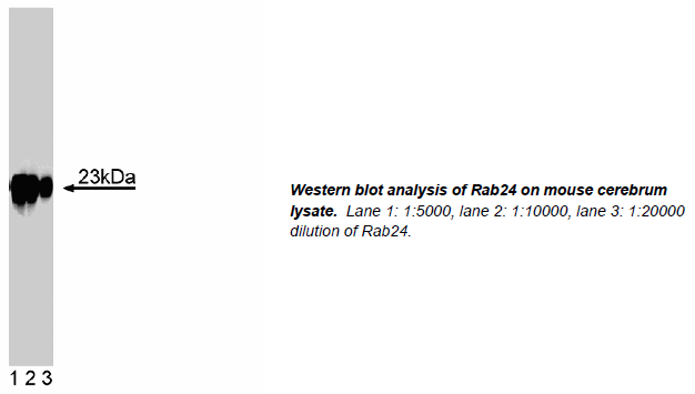 in nerve terminals or endocrine cells. Rab24 was cloned from mouse brain, and has 52% identity with Rab5. The mRNA expression of Rab24