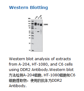 DDR2 Antibody detects endogenous levels of total DDR2 protein. This antibody also cross-reacts with 60 and 80 kDa proteins of unknown origin.