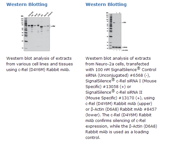 c-Rel (D4Y6M) Rabbit mAb recognizes endogenous levels of total c-Rel protein.