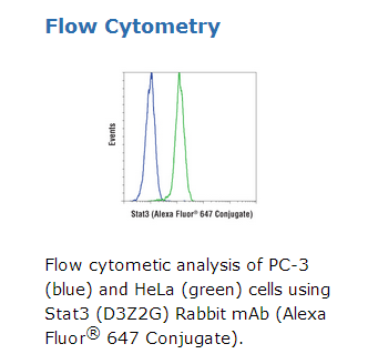 Stat3 (D3Z2G) Rabbit mAb (Alexa Fluor® 647 Conjugate) recognizes endogenous levels of total Stat3 protein.