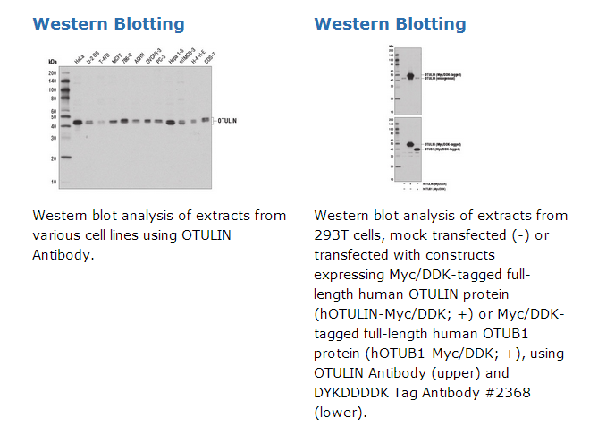 OTULIN Antibody recognizes endogenous levels of total OTULIN protein. This antibody does not cross-react with OTUB1.