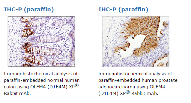 OLFM4 (D1E4M) XP® Rabbit mAb recognizes endogenous levels of total OLFM4 protein.