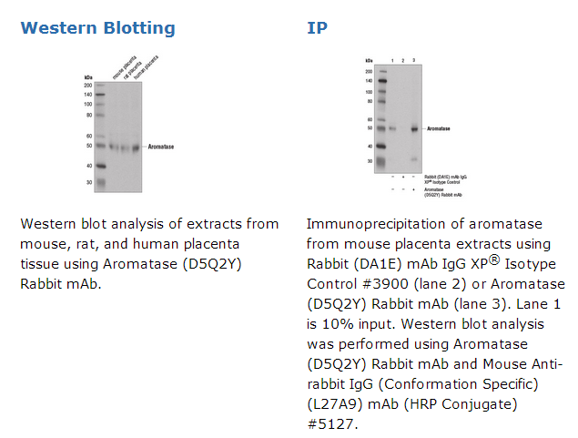Aromatase (D5Q2Y) Rabbit mAb recognizes endogenous levels of total aromatase protein.