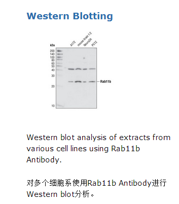 Polyclonal antibodies are produced by immunizing animals with a synthetic peptide corresponding residue surrounding Arg184 of human Rab11b protein. Antibodies are purified by protein A and peptide affinity chromatography.
