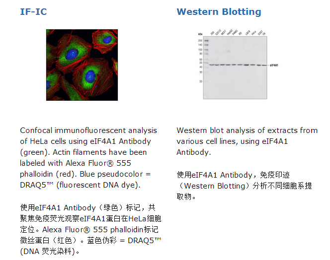 Polyclonal antibodies are produced by immunizing animals with a synthetic peptide corresponding to a sequence around Gly12 of human eIF4A1. Antibodies are purified by protein A and peptide affinity chromatography.