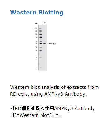 Polyclonal antibodies are produced by immunizing animals with a synthetic peptide corresponding to the sequence of human AMPKγ3. Antibodies are purified by protein A and peptide affinity chromatography.
