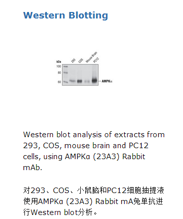 AMPKα (23A3) Rabbit mAb detects endogenous levels of total AMPKα protein.