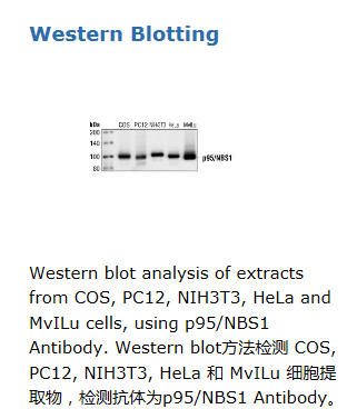 p95/NBS1 Antibody detects endogenous levels of total p95/NBS1 protein.