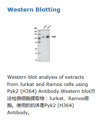 Pyk2 (H364) Antibody detects endogenous levels of total Pyk2 protein. This antibody does not cross-react with other related proteins.