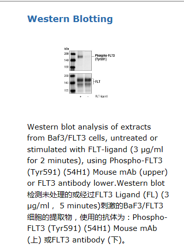 Monoclonal antibody is produced by immunizing animals with a synthetic phosphopeptide corresponding to the sequences surrounding Tyr591 of human FLT3.