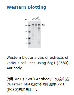 Brg1 (P680) Antibody detects endogenous levels of Brg1 protein.
