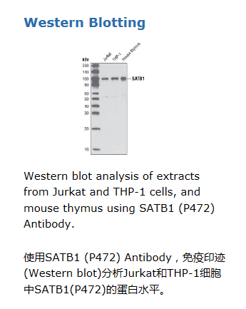 SATB1 (P472) Antibody detects endogenous levels of total SATB1 protein.