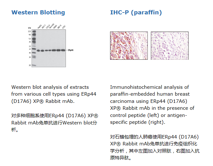 ERp44 (D17A6) XP® Rabbit mAb detects endogenous levels of total ERp44 protein.