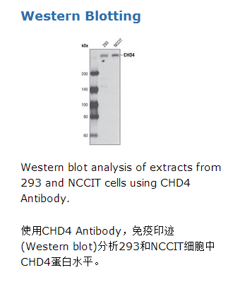 Polyclonal antibodies are produced by immunizing animals with a synthetic peptide corresponding to human CHD4 protein. Antibodies are purified by protein A and peptide affinity chromatography.