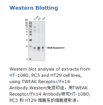 TWEAK Receptor/Fn14 Antibody detects endogenous levels of total TWEAK Receptor/Fn14 protein.
