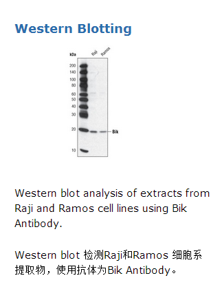 Bik Antibody detects endogenous levels of Bik protein. It does not cross-react with other Bcl-2 family members.