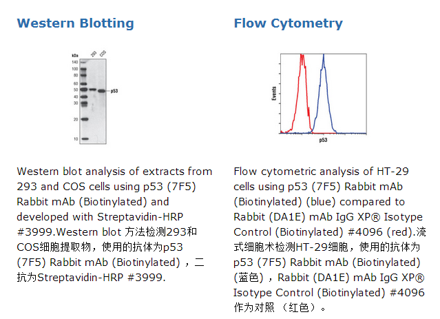 p53 (7F5) Rabbit mAb (Biotinylated) detects endogenous levels of total p53 protein.