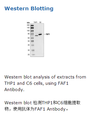 Polyclonal antibodies are produced by immunizing animals with synthetic peptides corresponding to a central region of FAF1 around residue 260. Antibodies are purified by protein A and affinity chromatography.