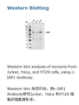 c-IAP1 Antibody detects endogenous levels of c-IAP1. At physiological levels, cross reactivity was not detected with other family members.