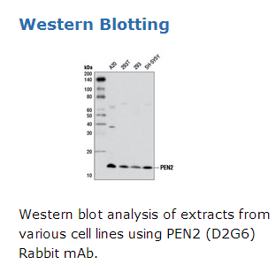 PEN2 (D2G6) Rabbit mAb recognizes endogenous levels of total PEN2 protein.