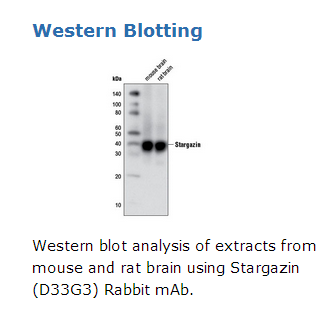 Stargazin (D33G3) Rabbit mAb recognizes endogenous levels of total stargazin protein.