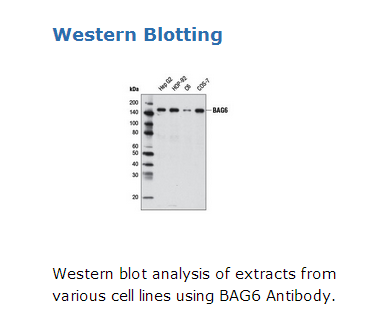 BAG6 Antibody recognizes endogenous levels of total BAG6 protein. It does not cross-react with other BCL2-associated athanogene (Bag) family members.