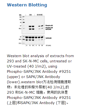 SAPK/JNK Antibody detects endogenous levels of total SAPK/JNK protein.