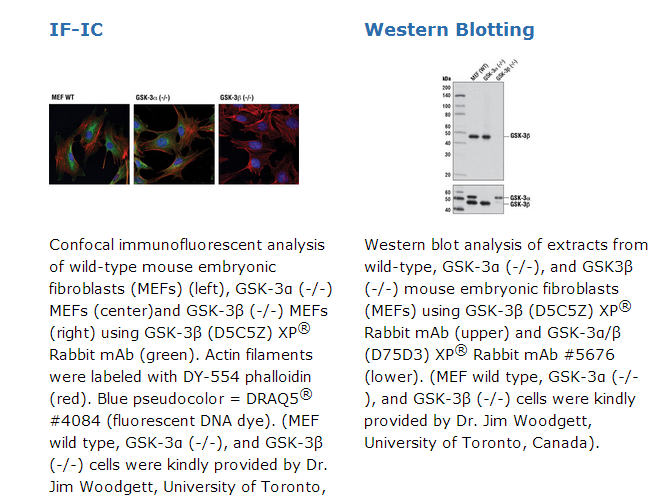 Each antibody in the GSK-3 Antibody Sampler Kit recognizes only its specific target and does not cross-react with other family members.