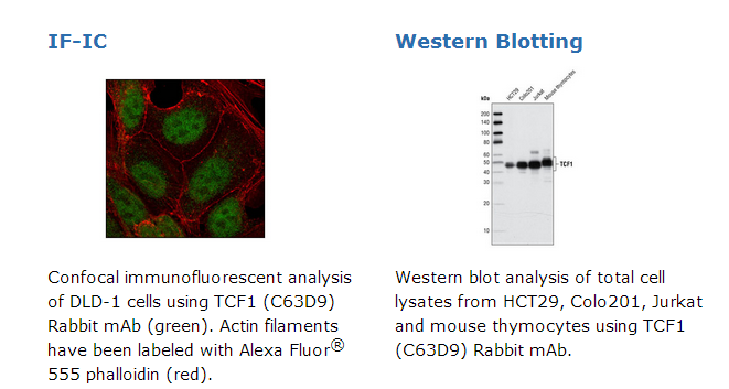 TCF1 (C63D9) Rabbit mAb 【子货号:#2203,包装:40 µl,,运保温度:–20°C】