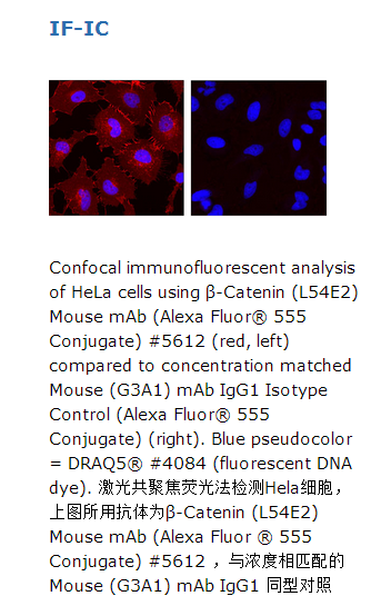 This Cell Signaling Technology (CST) antibody is conjugated to Alexa Fluor® 555 fluorescent dye under optimal conditions and tested in-house for direct immunofluorescent analysis in human cells.