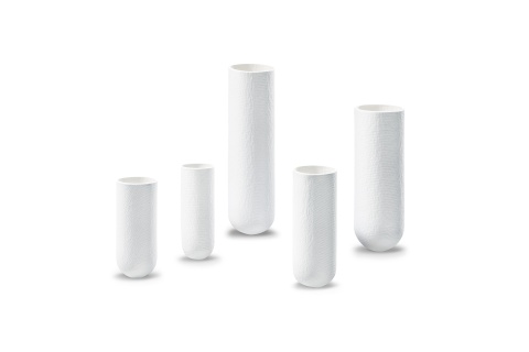 The extraction thimbles are manufactured from cotton linters with a high alpha-cellulose content which makes them high-purity thimbles that possess mechanical strength and outstanding retention capacity. They are thermally stable up to 100°C. The inner diameter, outer length, round bottom and wall thickness are defined according to the norm DIN 12449. They are especially suited for all routine extractions: fat extractions, extraction of lipids from eggs and egg-containing products, softeners, additives, monomer components in plastics and rubber.