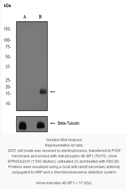 Anti-phospho-4E-BP1 (Thr70) Antibody, clone EPR654(2)AY is a Rabbit Monoclonal Antibody for detection of phospho-4E-BP1 (Thr70) & has been validated in WB, IHC(P).