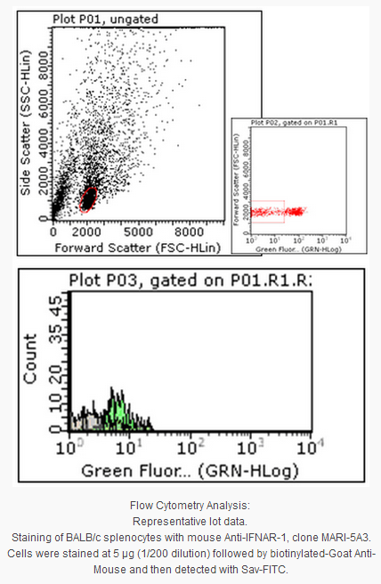 This antibody recognizes the extracellular domain of IFNAR-1.