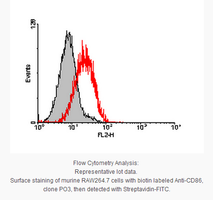 Flow Cytometry Analysis: 1 µg of this antibody detected CD86 in RAW264.7 cells.