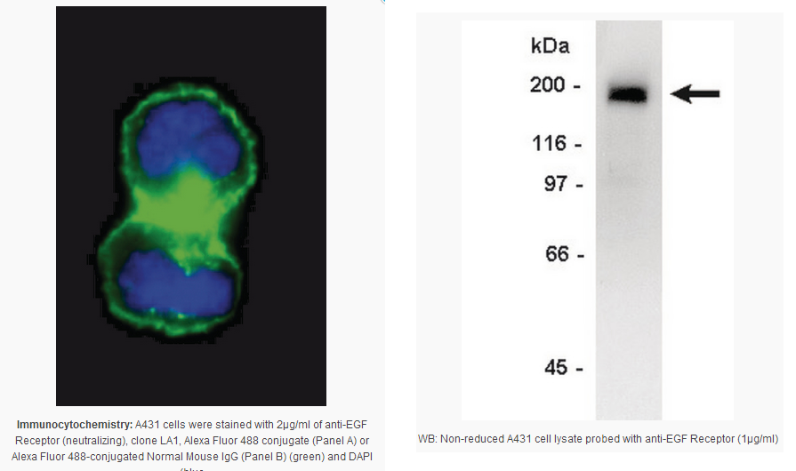 Detect EGFR using this Anti-EGFR Antibody, neutralizing, clone LA1 validated for use in IC, IP, NEUT & WB.